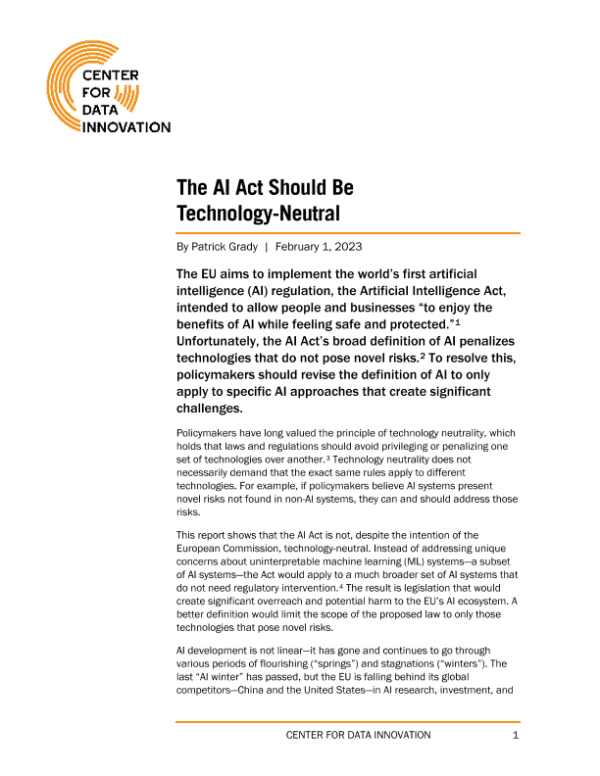 【CENTER FOR DATA INNOVATION】【20230201】ITIF-人工智能法案应该是技术中立的-17页
