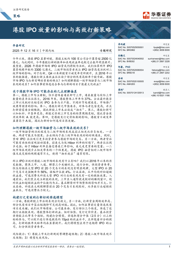 【华泰证券】【202512】港股 IPO放量的影响与高效打新策略-25页