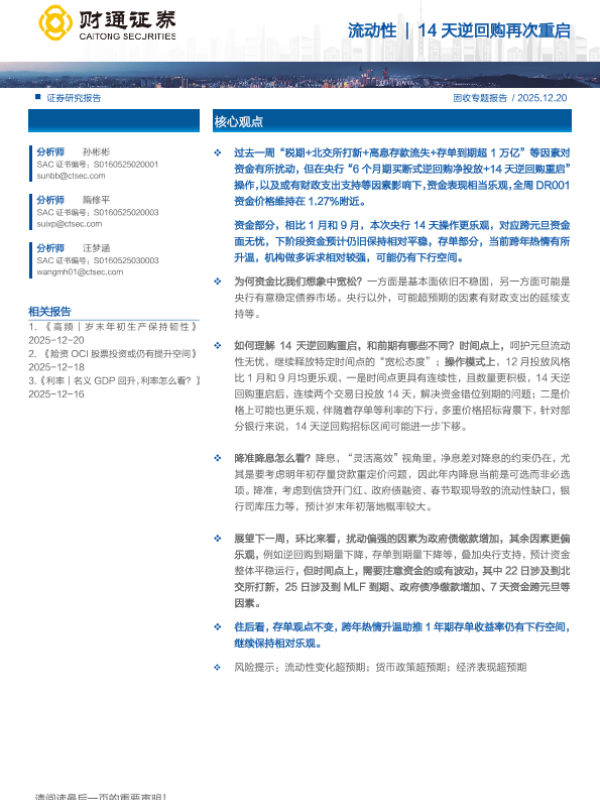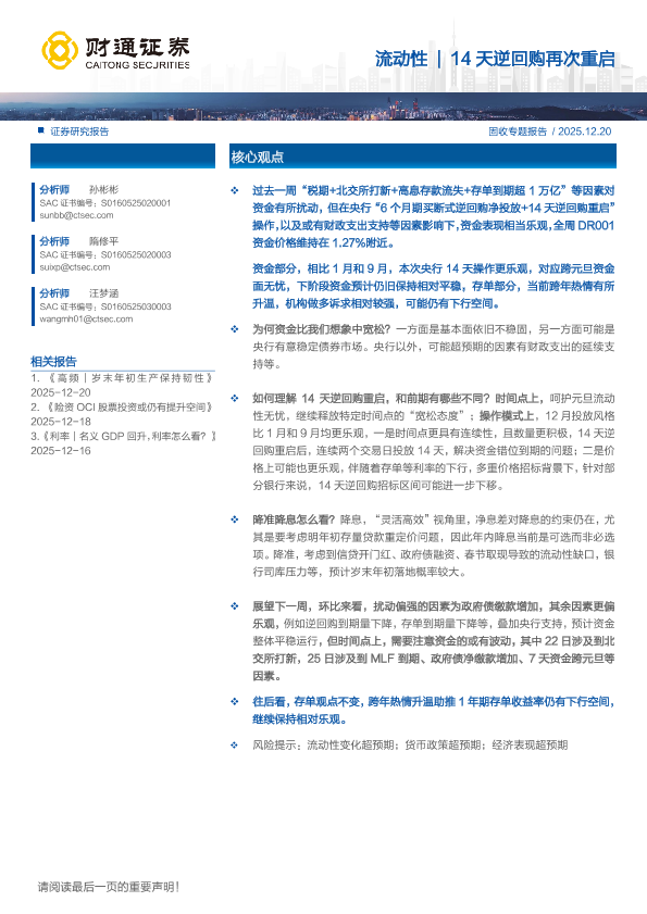 【财通证券】【202512】流动性|14天逆回购再次重启-23页