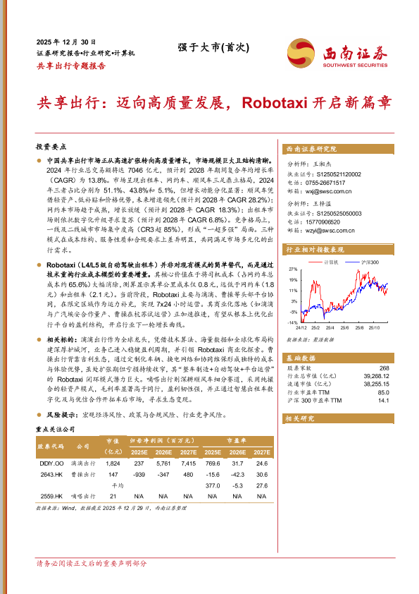 【西南证券】【2025】共享出行:迈向高质量发展,Robotaxi开启新篇章-25页