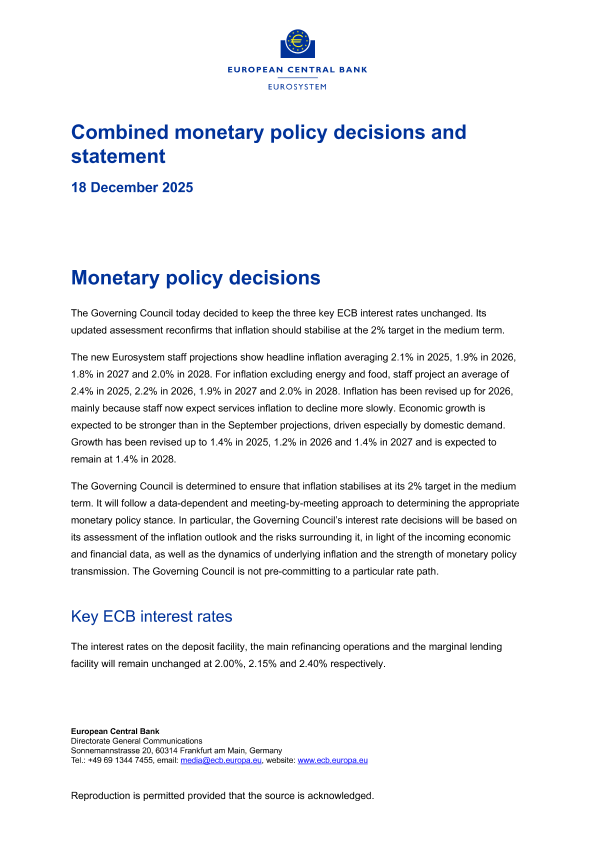 【European Central Bank】【202512】Combined monetary policy decisions and statement-6页