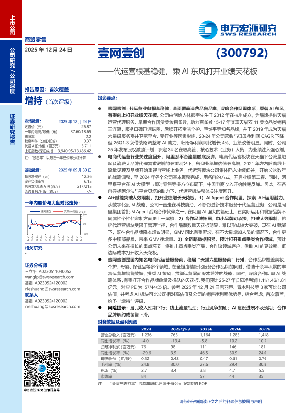 【申万宏源】【202512】壹网壹创(300792)——代运营根基稳健,乘 AI东风打开业绩天花板-27页