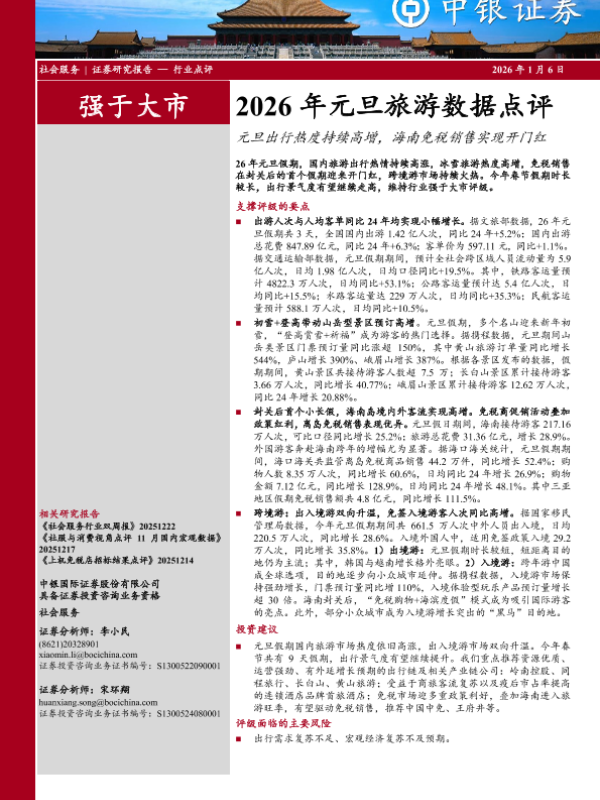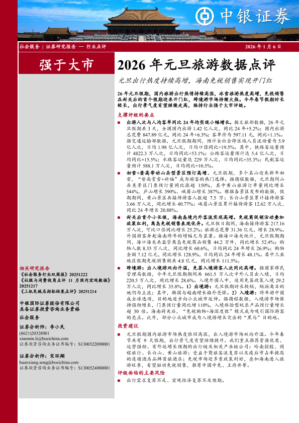 【中银证券】【202601】2026年元旦旅游数据点评:元旦出行热度持续高增,海南免税销售实现开门红-5页