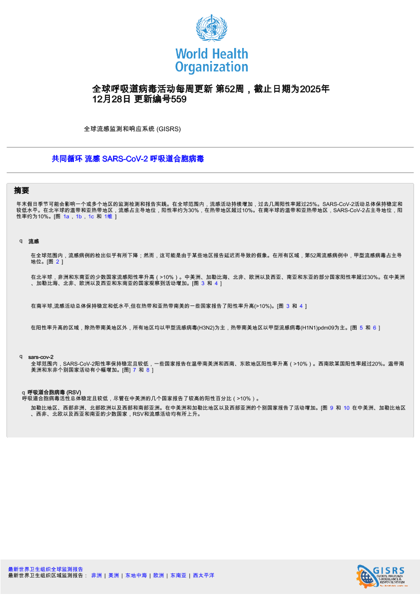 【世界卫生组织】【2025】全球呼吸道病毒活动每周更新第52周,截止日期为2025年12月28日更新编号559-5页