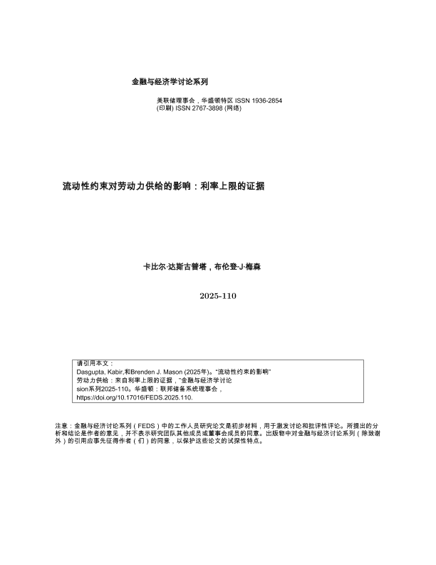 【美联储理事会】【2025】流动性约束对劳动力供给的影响 利率上限的证据-50页