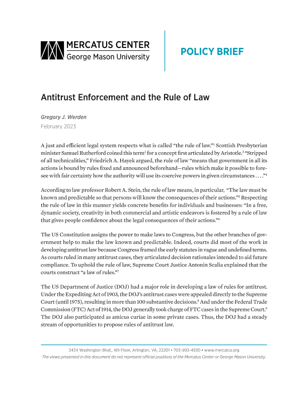 【Mercatus Center at George Mason University】【202302】Antitrust Enforcement and the Rule of Law-10页