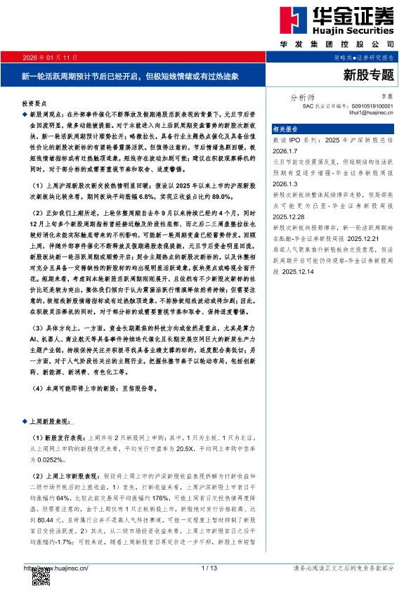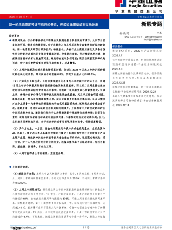 【华金证券】【202601】新一轮活跃周期预计节后已经开启,但极短线情绪或有过热迹象-13页