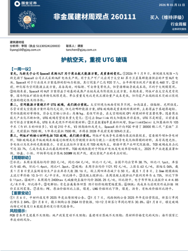 【国金证券】【202601】20260111-国金证券-非金属建材周观点_护航空天_重视UTG玻璃-18页