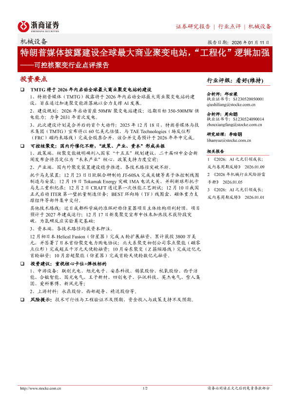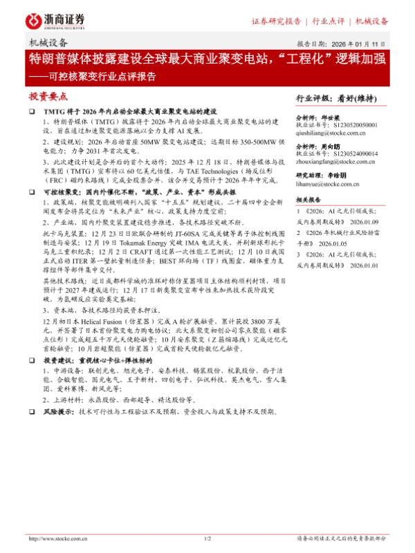 【浙商证券】【202601】可控核聚变行业点评报告-2页