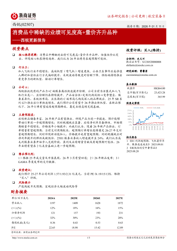 投资评级 业绩可见度 私人飞机 量价齐升 消费品