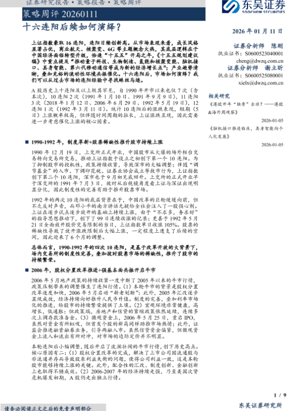 【东吴证券】【202601】策略周评 20260111 十六连阳后续如何演绎?-9页