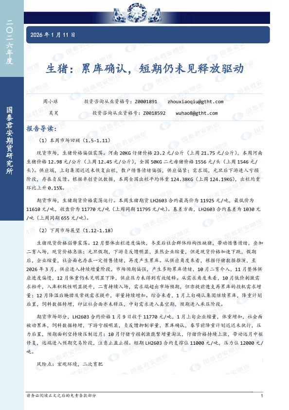 【国泰君安期货】【202601】生猪:累库确认,短期仍未见释放驱动-7页