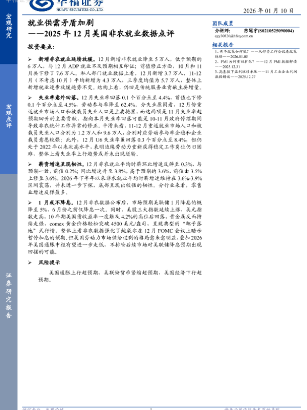 【华福证券】【202512】就业供需矛盾加剧——2025年12月美国非农就业数据点评-7页