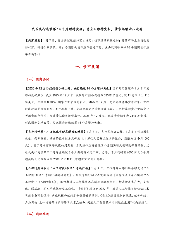 宏观经济 可转债市场 黄金储备 货币政策 债券市场