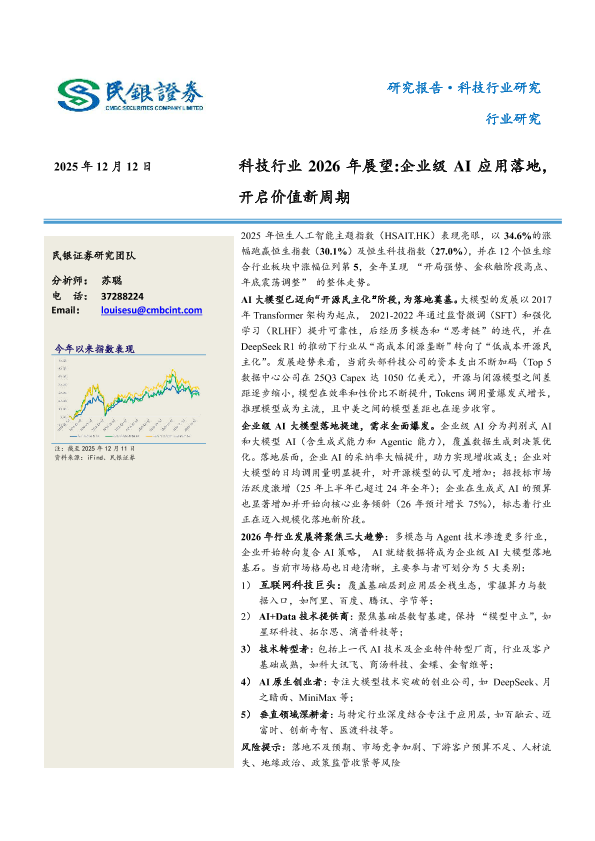 【民银证券】【202512】科技行业2026年展望 企业级 AI应用落地,开启价值新周期-39页