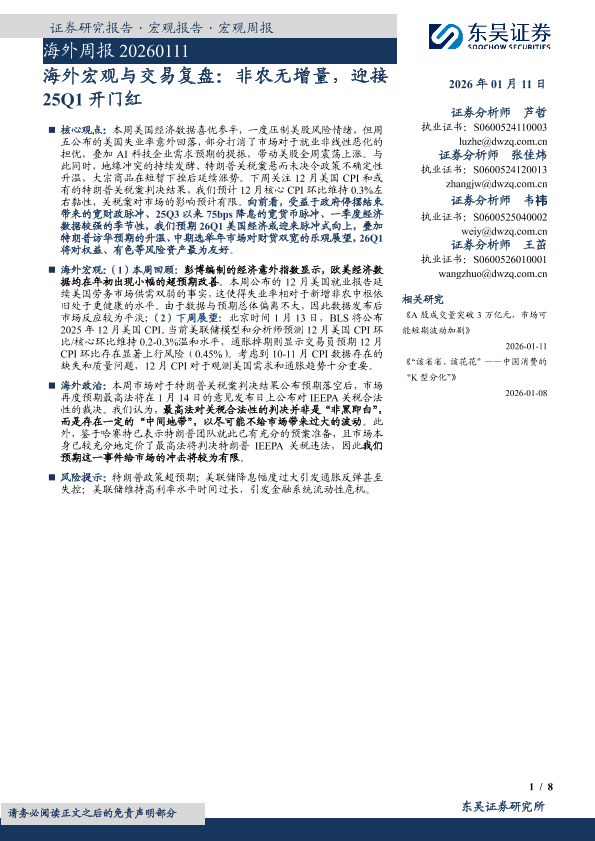【东吴证券】【202601】海外宏观与交易复盘:非农无增量,迎接25Q1开门红-8页