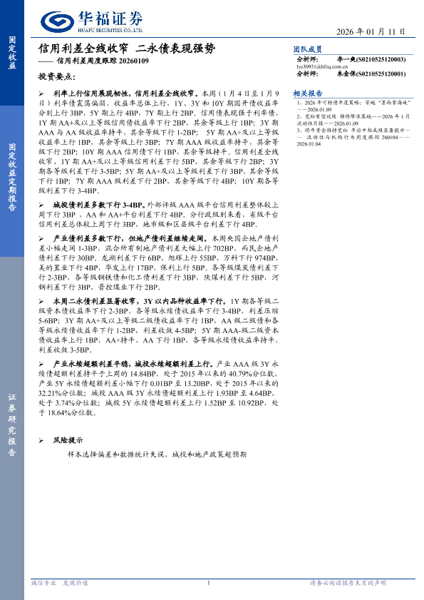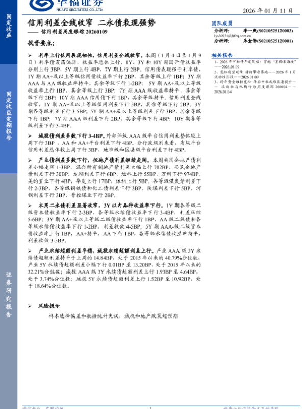 【华福证券】【202601】信用利差全线收窄二永债表现强势——信用利差周度跟踪 20260109-10页