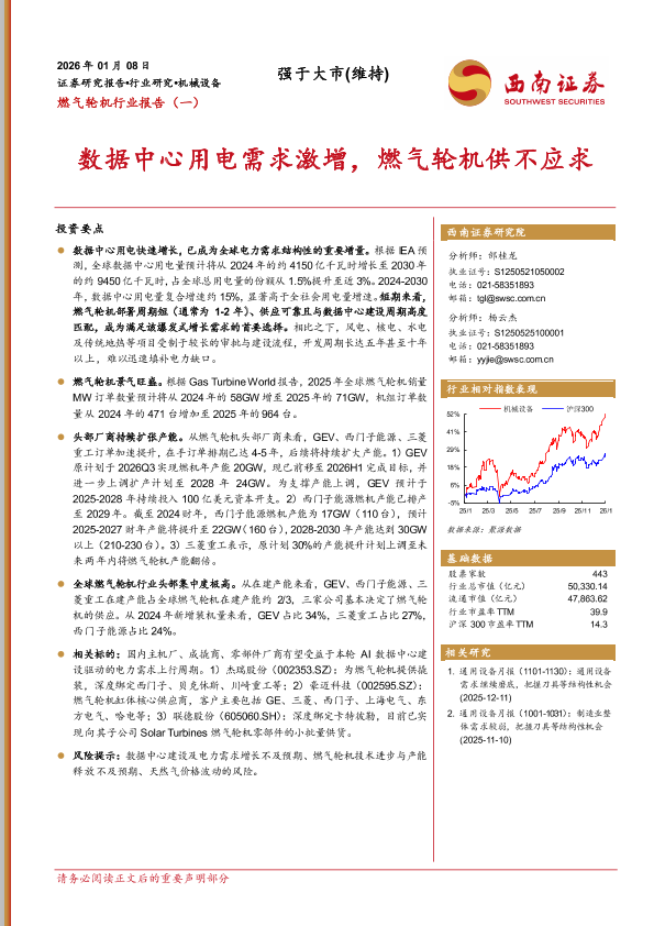 燃气轮机 电力需求 行业分析 产能扩张 数据中心