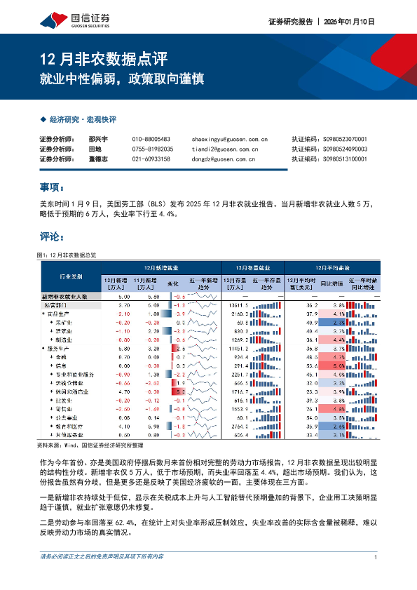 【国信证券】【202512】12月非农数据点评就业中性偏弱,政策取向谨慎-7页
