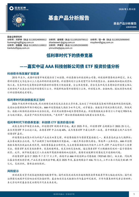 【国金证券】【2025】嘉实中证AAA科技创新公司债ETF投资价值分析_基金产品分析报告-19页