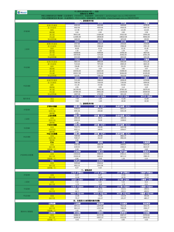 股指 行业分析 宏观信息 期货市场 投资策略