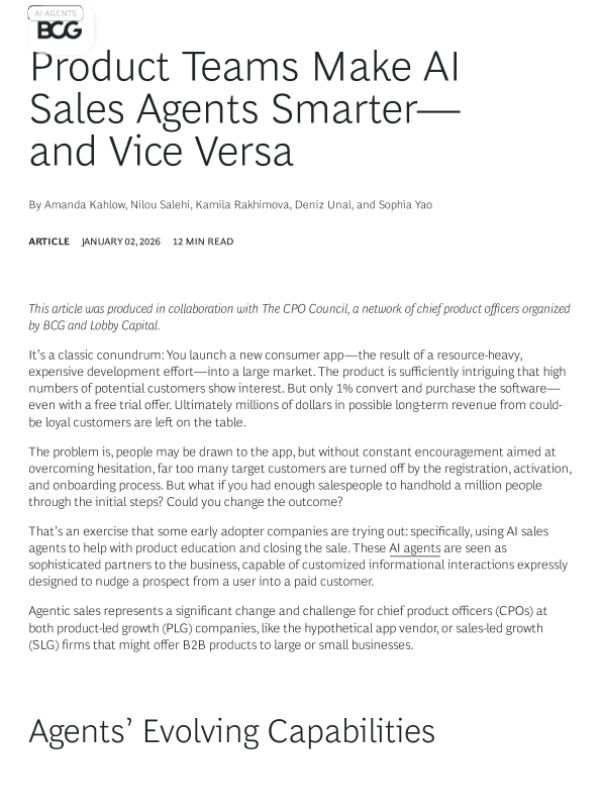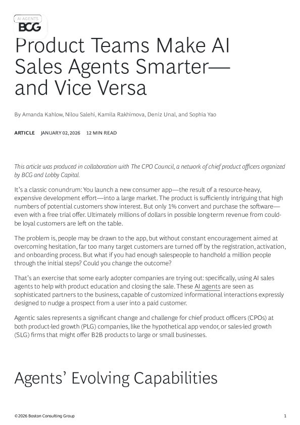 【Boston Consulting Group&Lobby Capital】【202601】Product Teams Make AI Sales Agents Smarter—and Vice Versa-9页
