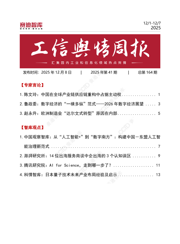 【中国观察智库&澎湃研究所&腾讯研究院&科情智库】【202512】2026年数字经济展望,中国在全球产业链供应链重构中占据主动权,欧洲制造业“达尔文式转型”原因在内部,构建中国-东盟人工智能治理新范式,中企出海的3个认知误区,AI for Science,走到哪一步了?,日本量子技术未来产业布局经验及启示-16页