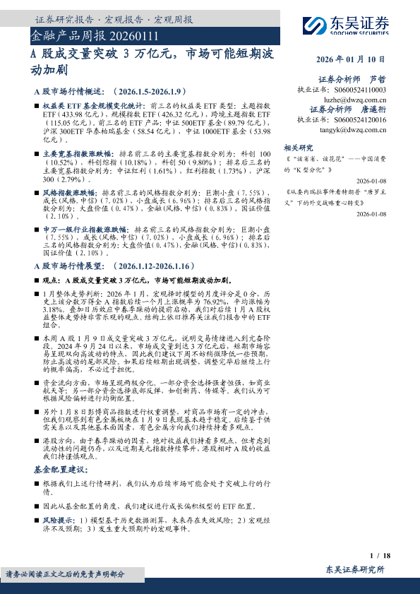 【东吴证券】【202601】金融产品周报 20260111-18页