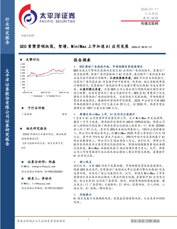 【太平洋证券】【202601】GEO重塑营销版图,智谱、M in iMax上市加速 A I应用发展(2026.01.05-01.11)-15页