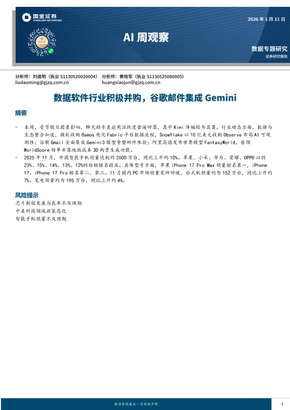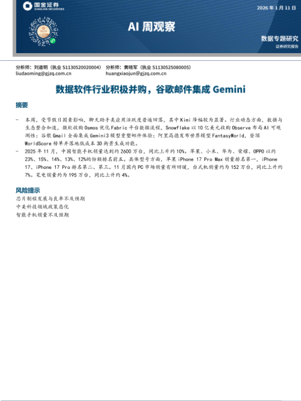 【国金证券】【202501】AI周观察:数据软件行业积极并购,谷歌邮件集成Gemini-8页