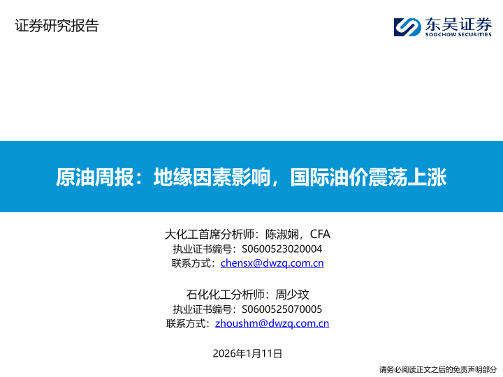 【东吴证券】【202601】原油周报:地缘因素影响,国际油价震荡上涨-59页
