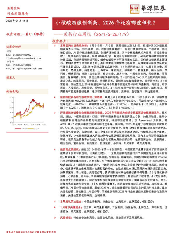 【华源证券】【202601】小核酸领涨创新药,2026年还有哪些催化?-16页