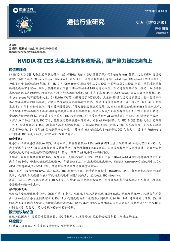 【国金证券】【202601】2026-01-11_国金证券_通信行业周报:NVIDIA在CES大会上发布多款新品,国产算力链加速向上.pdf-11页
