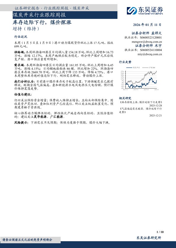 【东吴证券】【202601】煤炭开采行业跟踪周报:库存边际下行,煤价探涨-10页