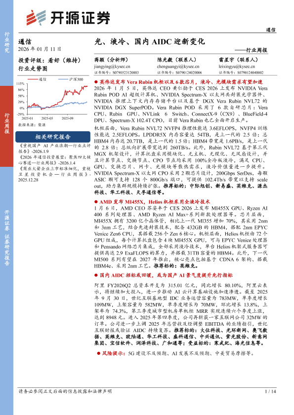 【开源证券】【202601】通信行业周报:光、液冷、国内AIDC迎新变化-14页