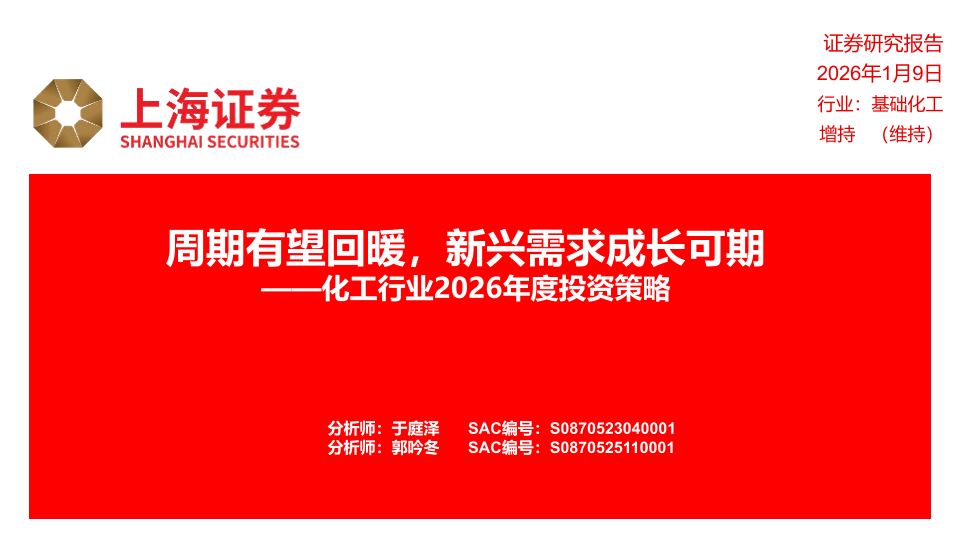 【上海证券】【202601】周期有望回暖,新兴需求成长可期——化工行业2026年度投资策略-29页