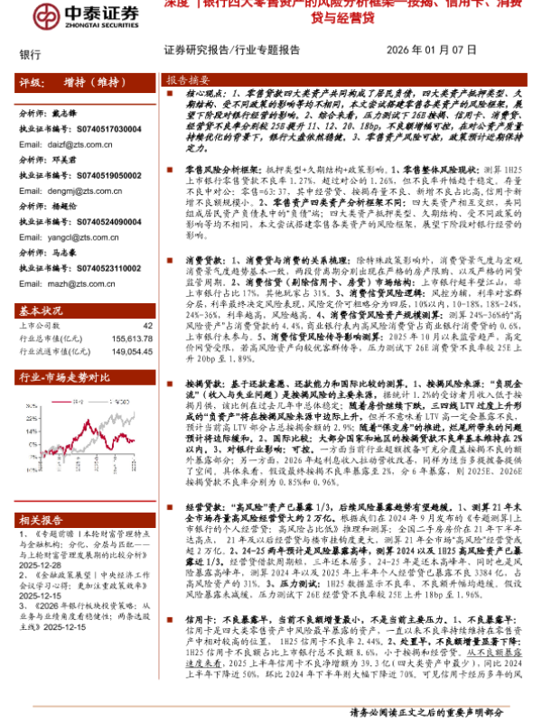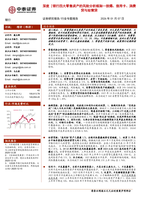 【中泰证券】【202501】按揭、信用卡、消费贷与经营贷深度:深度银行四大零售资产的风险分析框架-22页