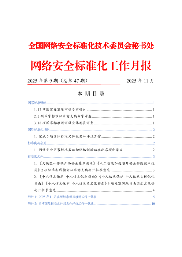 【全国网络安全标准化技术委员会秘书处】【202511】网络安全标准化工作月报-12页