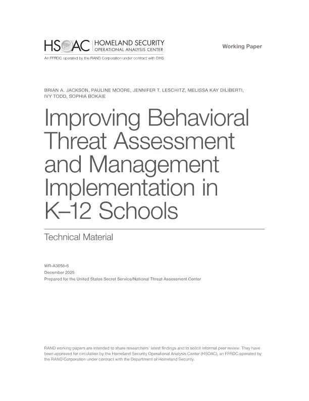 【RAND Corporation】【202512】Improving Behavioral Threat Assessment and Management Implementation in K–12 Schools-36页