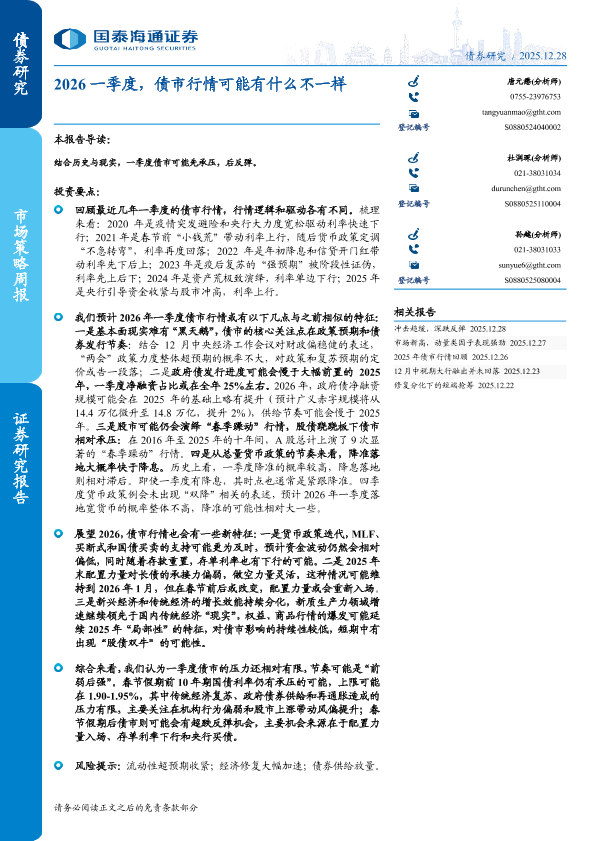 【国泰海通证券】【202512】2026一季度,债市行情可能有什么不一样-12页