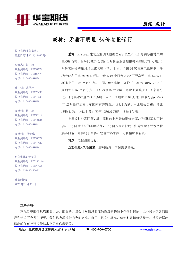 【华宝期货】【202601】成材_矛盾不明显_钢价盘整运行-1页
