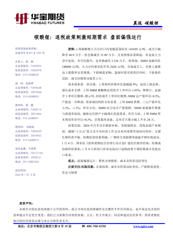 【华宝期货】【202601】碳酸锂_退税政策刺激短期需求_盘面偏强运行-1页