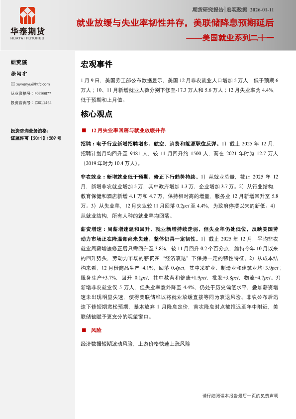 【华泰期货】【202312】就业放缓与失业率韧性并存,美联储降息预期延后-6页