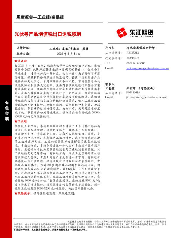 【东证期货】【202601】工业硅/多晶硅周度报告-15页