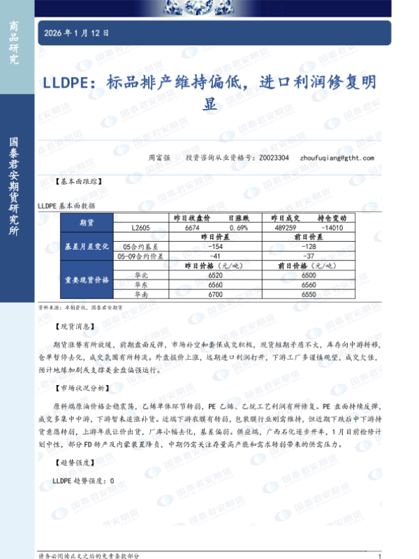 【国泰君安期货】【202601】LLDPE:标品排产维持偏低,进口利润修复明显-2页