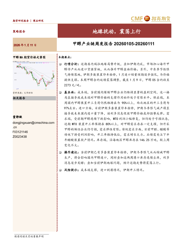 【招商期货】【202601】甲醇产业链周度报告 20260105-20260111-17页