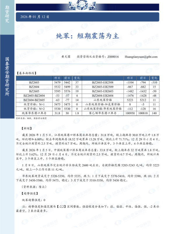 【国泰君安期货】【202601】纯苯:短期震荡为主-2页