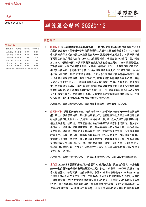 【华源证券】【202601】华源晨会精粹 20260112-15页