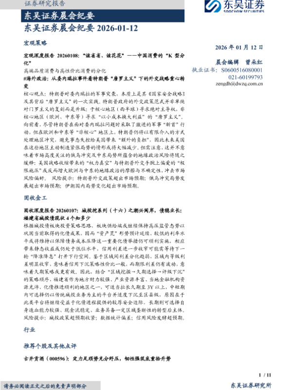 【东吴证券】【202601】东吴证券晨会纪要-11页