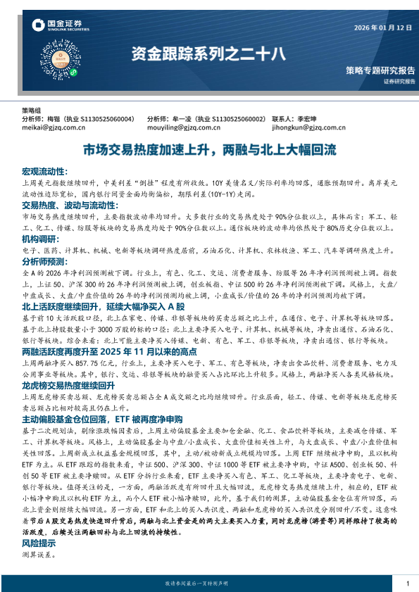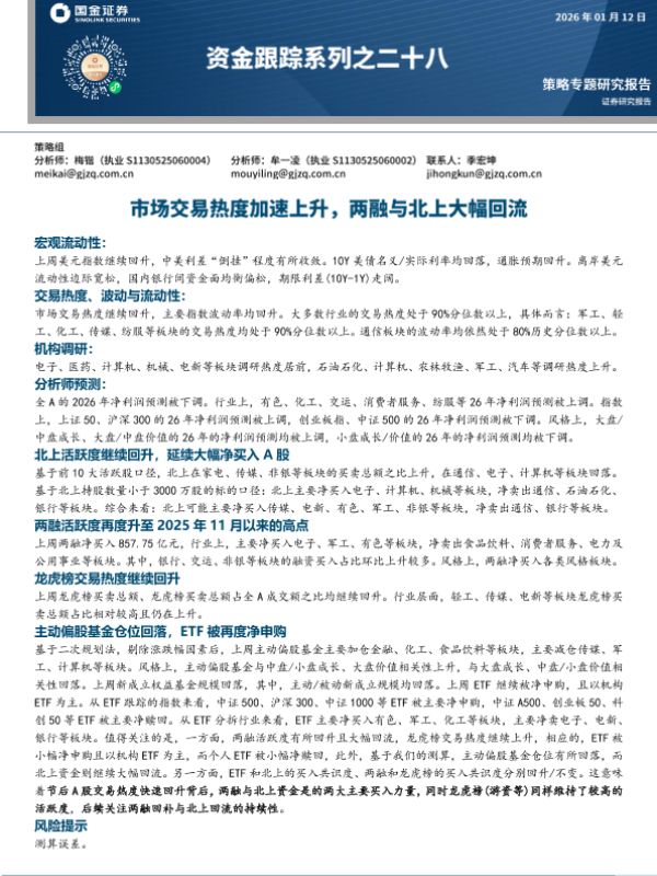 【国金证券】【20260112】资金跟踪系列之二十八:市场交易热度加速上升,两融与北上大幅回流-31页